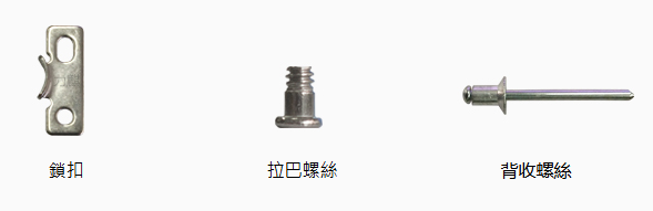 – 安裝固定:拉釘